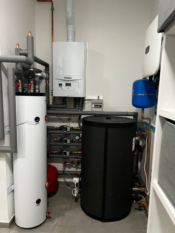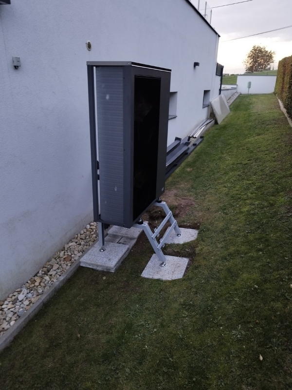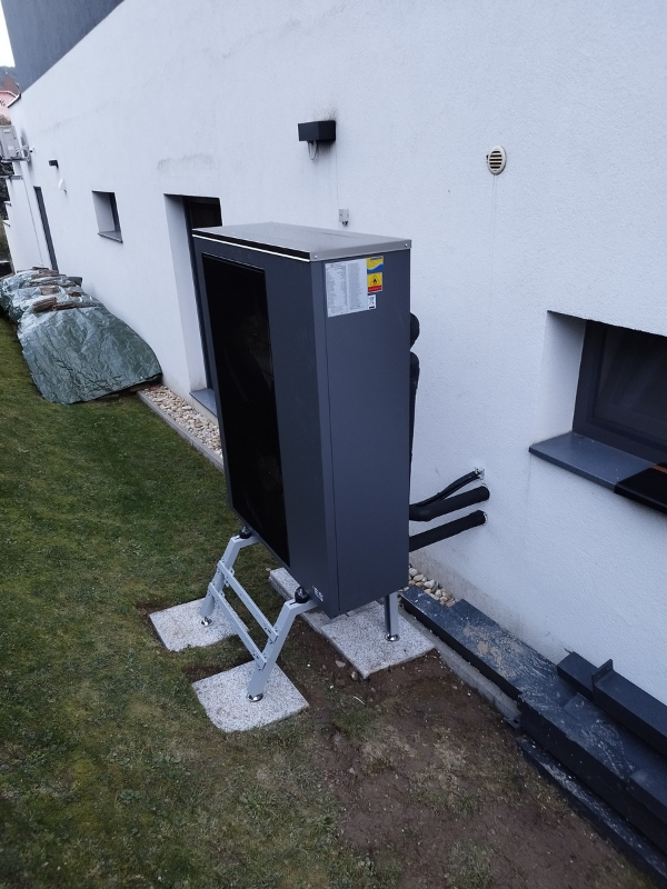 Az energiatudatosság jegyében egy hőszivattyú telepítésére kértek fel bennünket. Először elvégeztük a ház felmérését és pontos hőtechnikai számítást végezve kiválasztottuk a megfelelő berendezést. Egy 19kW-os Energy Save (ES) monoblokkos hőszivattyúra esett a választás. A telepítéskor a meglévő rendszerre egy hőcserélőn keresztül csatlakoztattuk a hőszivattyút, hogy a primer kört glykollal feltöltve biztonságosan tudja a tulajdonos üzemeltetni a rendszert. A HMV ellátást is átalakítottuk, így mind a hőszivattyú, mind a gázkazán képes a melegvíz előállításra.